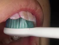 ※ペーストは低発泡,研磨剤配合のものを使用し,ブラシは広範囲の側面を使用します.押し付けず,離さず,というソフトタッチであれば,ペーストの飛び散りを防止できます |