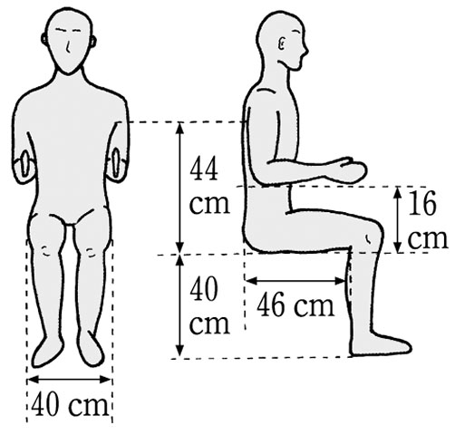 身体計測を行った結果を図に示す.標準型車椅子を作製するにあたり,車椅子基本寸法として