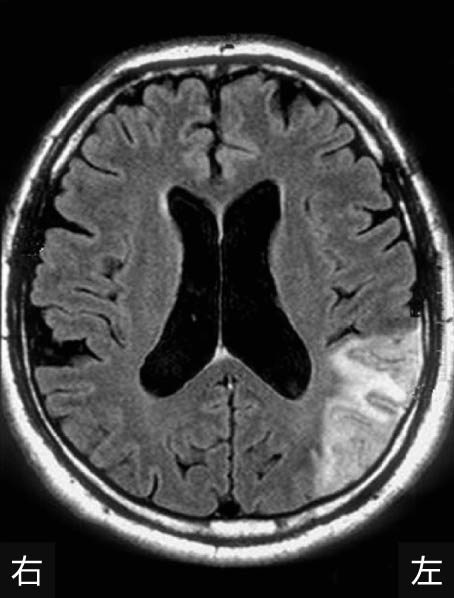 60歳の男性.右利き.脳梗塞を発症し,回復期リハビリテーション病棟に入院中である.食事時に右手でスプーンの柄を握りこんでしまい,うまくスプーン操作ができず,介助が必要になることが多いが,少しずつ食事動作が円滑にできる場面が増えてきている.頭部MRIを下に示す.この食事動作の病態として