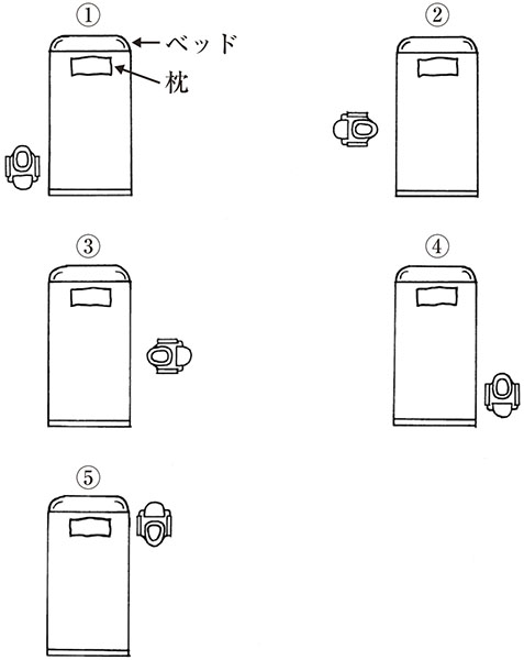 脳卒中後の左片麻痺患者の生活環境を整えることとした.ベッドとポータブルトイレの位置で