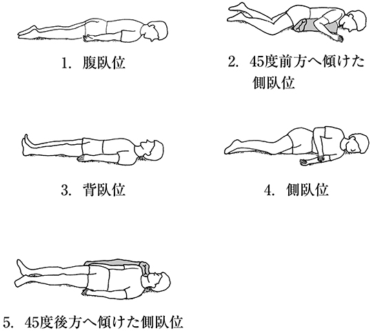 右外側肺底区の痰に対する体位排痰法(体位ドレナージ)で最も