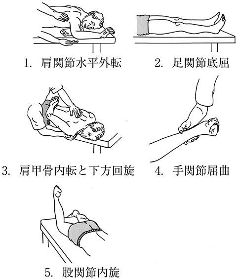 Danielsらの徒手筋力テスト(段階3)を図に示す.検査肢位で
